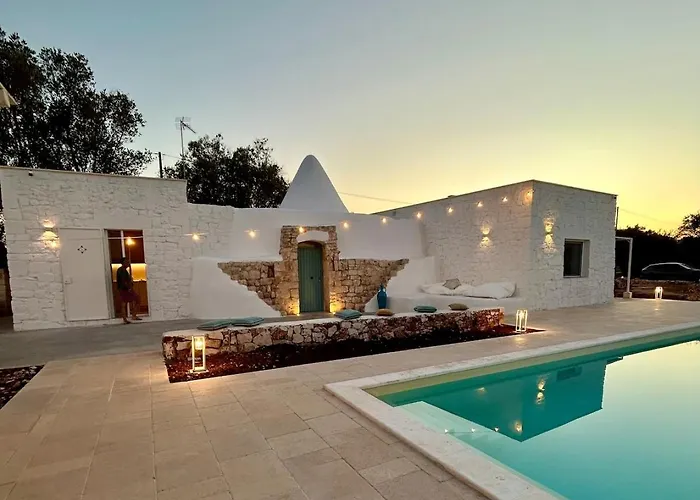 Η Trullo La Meringa, Charming Home In Ostuni απέχει σχεδόν 7 χλμ. από την Πλατεία Piazza della Liberta και διαθέτει πισίνα στη βεράντα για μια ευχάριστη διαμονή. Αυτή η βίλα προσφέρει πισίνα και προσκαλεί τους επισκέπτες να επισκεφθούν το Centro Storico, που βρίσκεται σε απόσταση 15 λεπτών οδικώς.